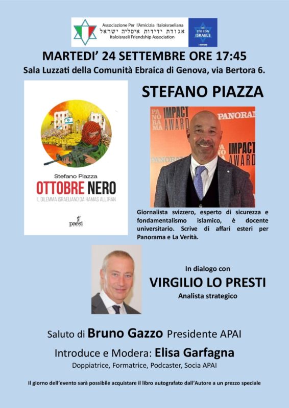 Ieri sera, nella suggestiva location della Sala Luzzati della Comunità Ebraica di Genova,ho avuto l’onore di presentare il mio libro “Ottobre Nero”. Non avrei potuto desiderare […]